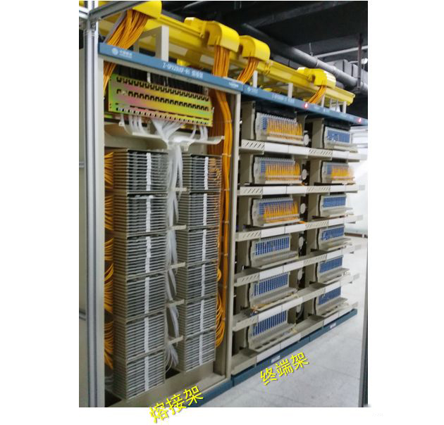 熔接架的尺寸為:2200×900×300(單位:mm),容量為1728芯,一般2個熔接架背靠背安裝。終端架的尺寸為:2200×900×600(單位:mm),容量為1152芯(線路側(cè)和設(shè)備側(cè)各576芯);終端架的數(shù)量一般初次配置2~3個,之后根據(jù)需求增加,一般2個背靠背安裝的熔接架最多對應(yīng)6個終端架。